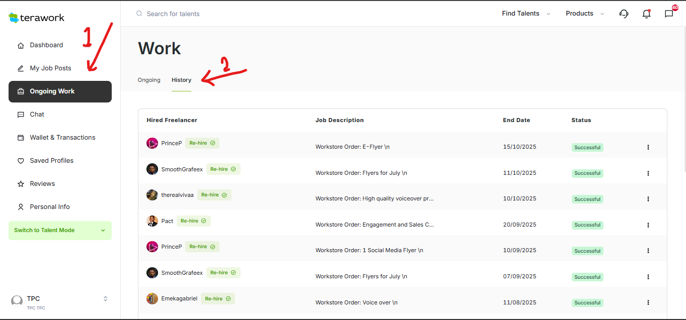 Step 1: Log in to your profile through http://www.TERAWORK.com.