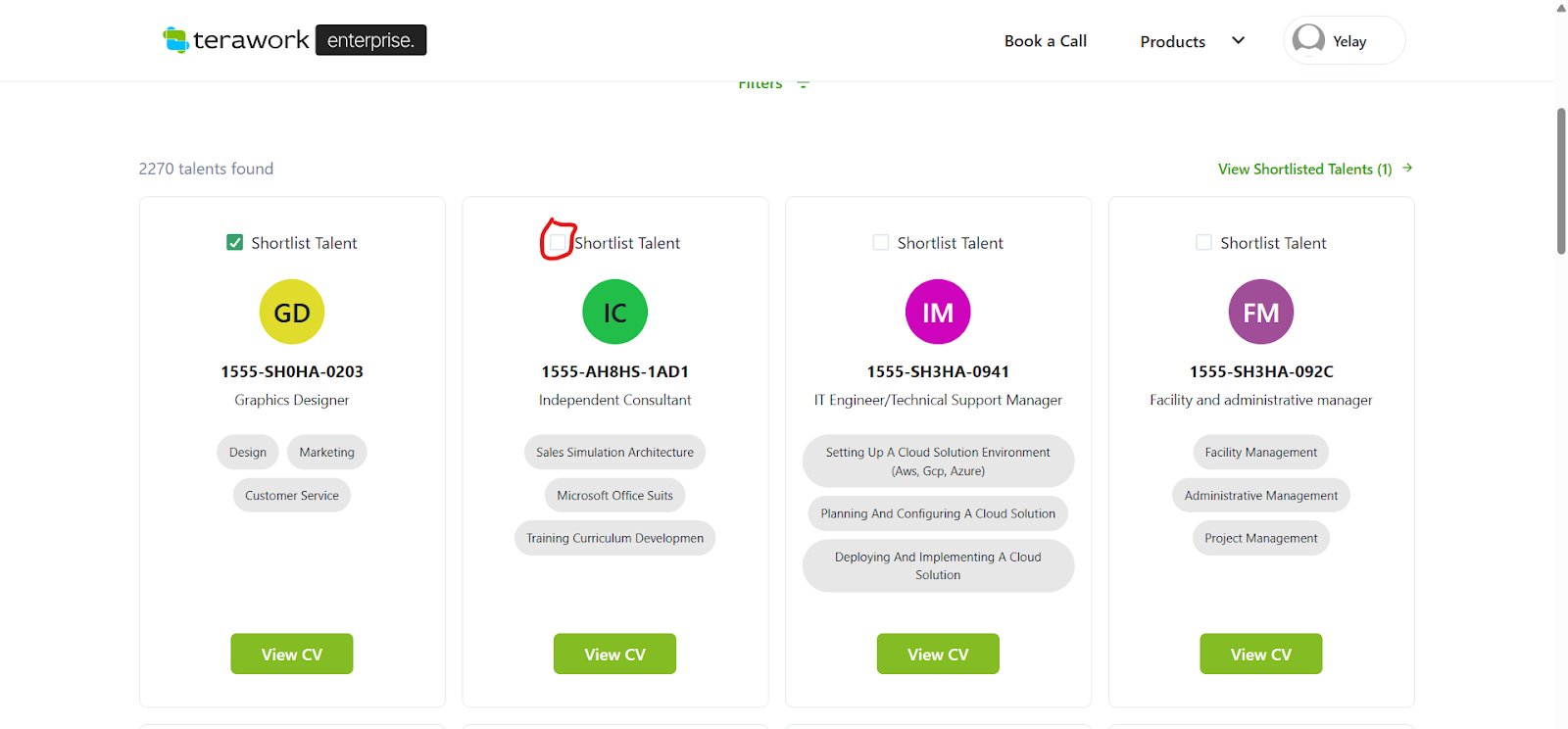 Step 4: Click on the check mark beside “Shortlist Talents.”