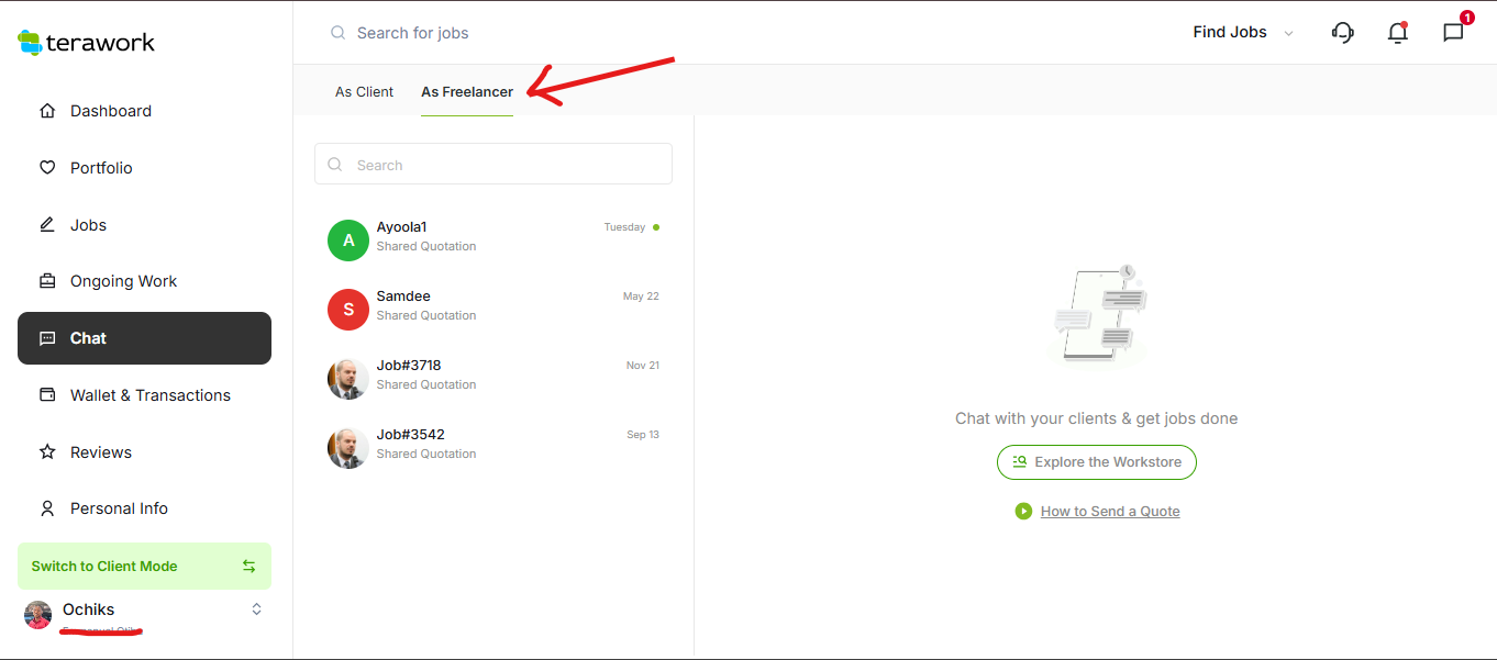Step 5: Open the conversation with the client who has contacted you to start chatting.
