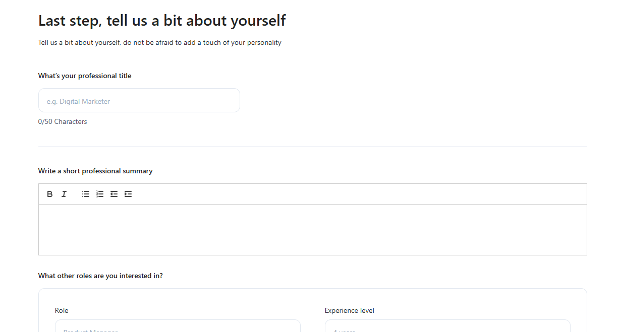 Step 4: Click next and complete the Bio section.