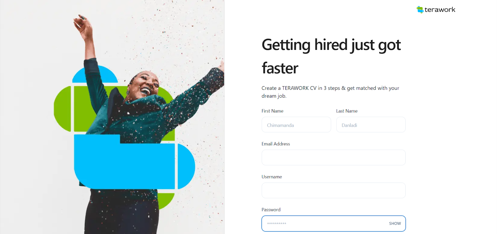 Step 5: Click Finish, and your CV will be created on the Terawork Platform.