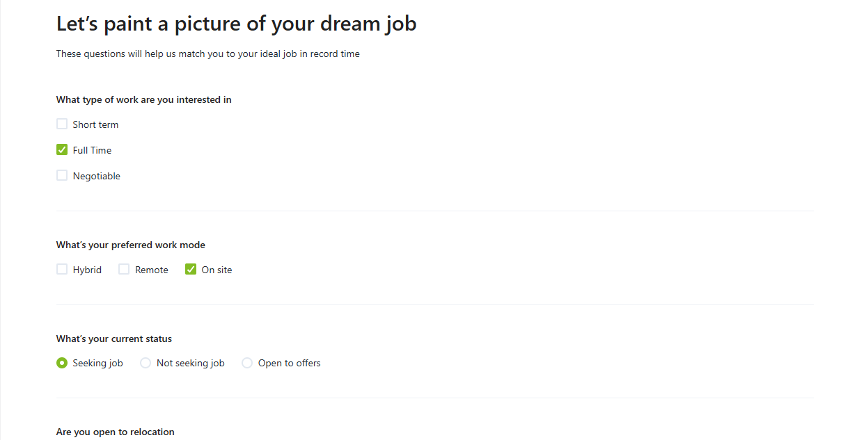 Step 3: Fill in your job preference details.