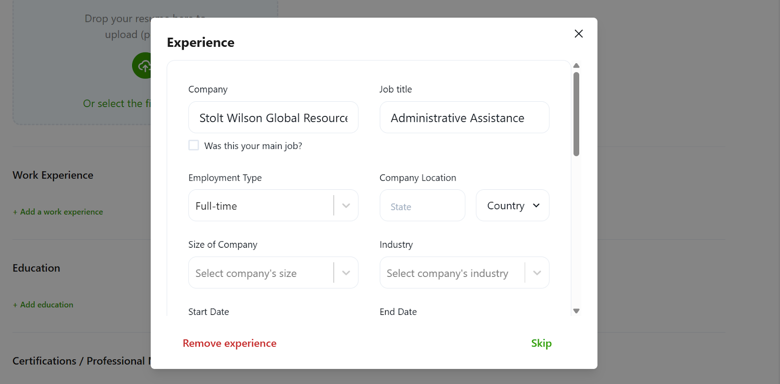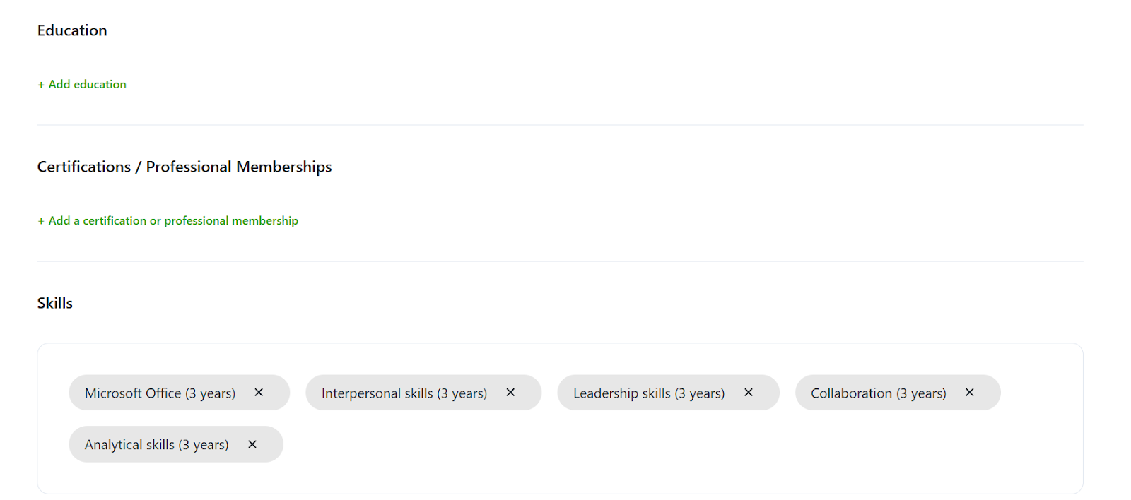 Step 2: Provide details for your education, certification, and skills sections. After completion, click next to proceed to the next stage.
