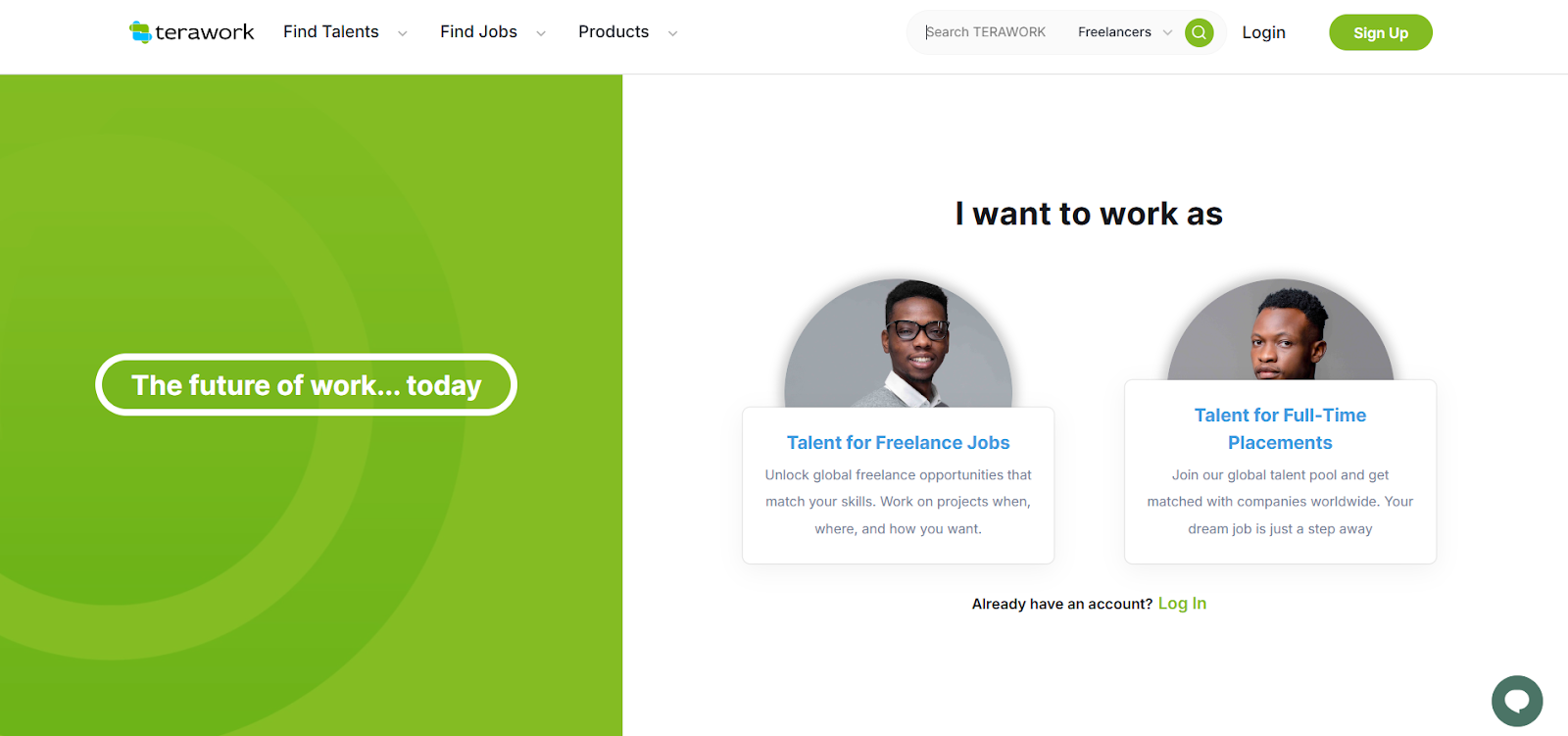 Step 1: Click on “I want to work.”