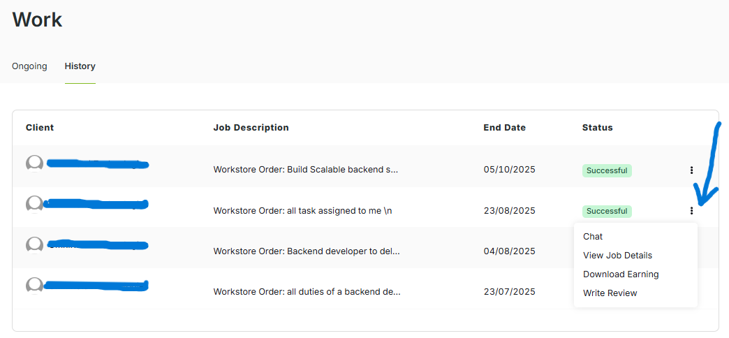 Step 3.1: In front of a successful job, click on the three dots on the right-hand side.