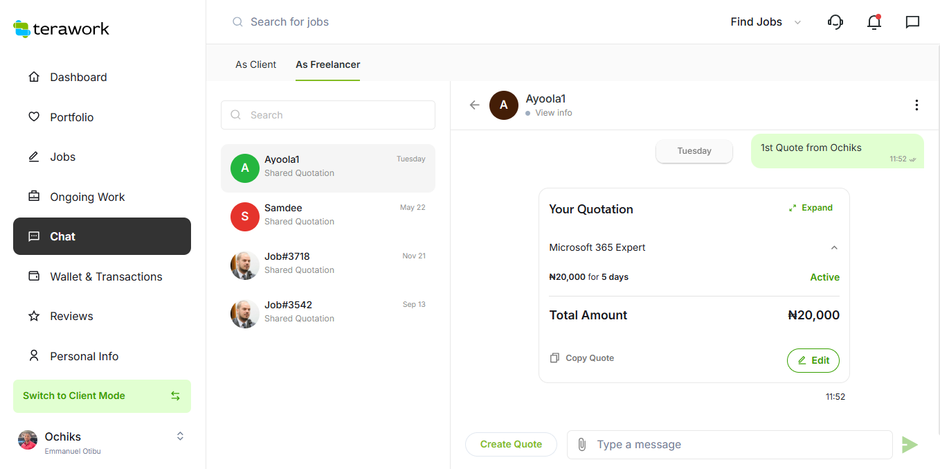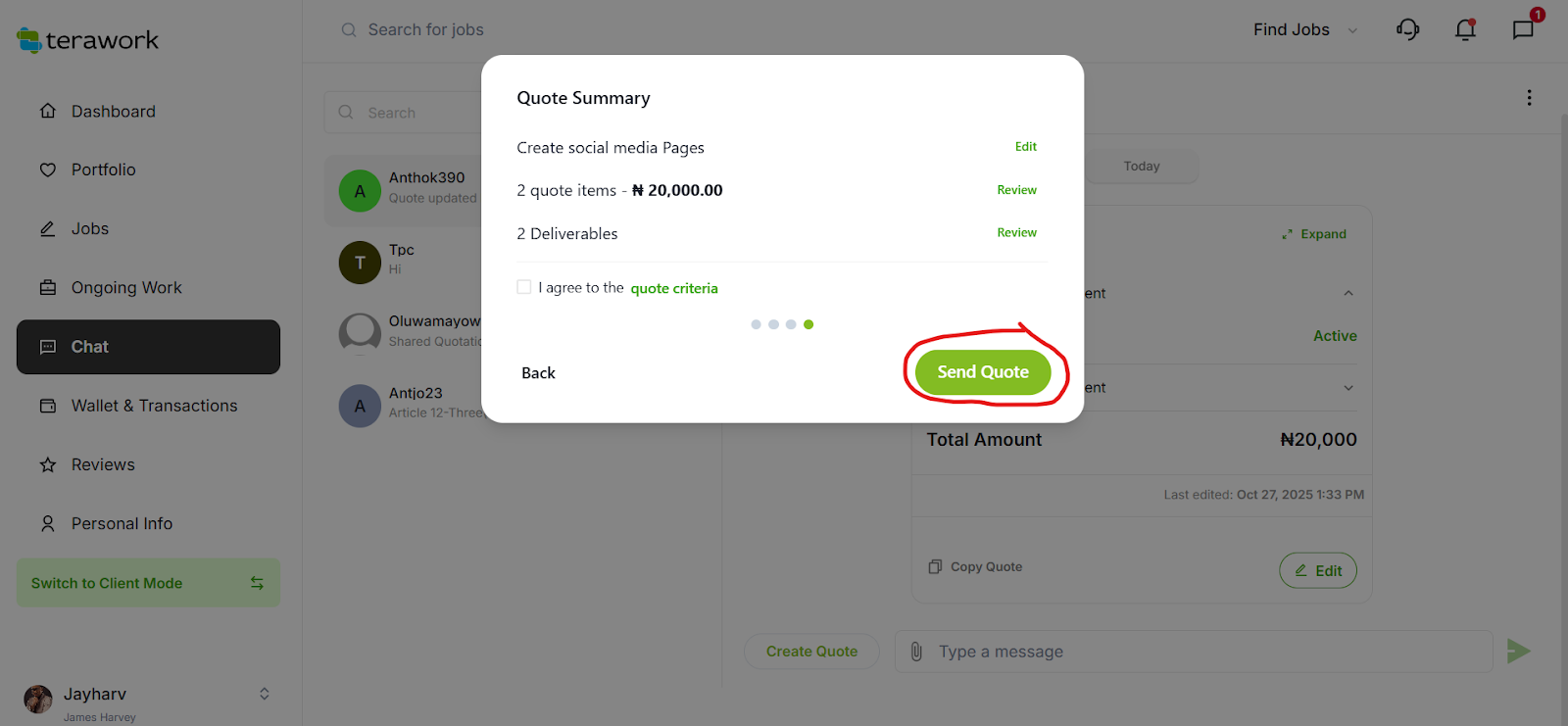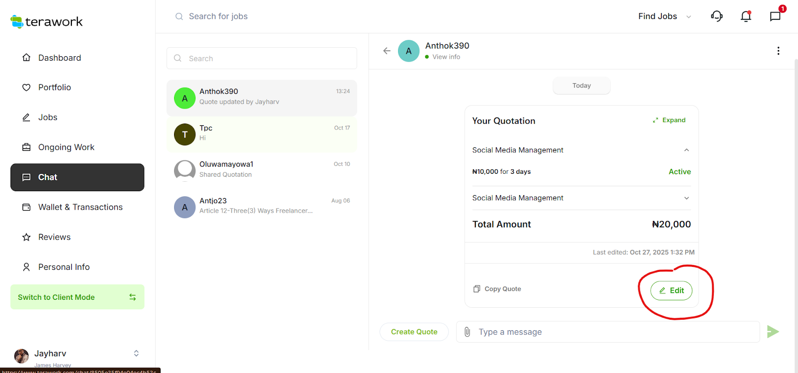 N.B. You can only edit the duration and the price. To change the description, you must retract the quote.