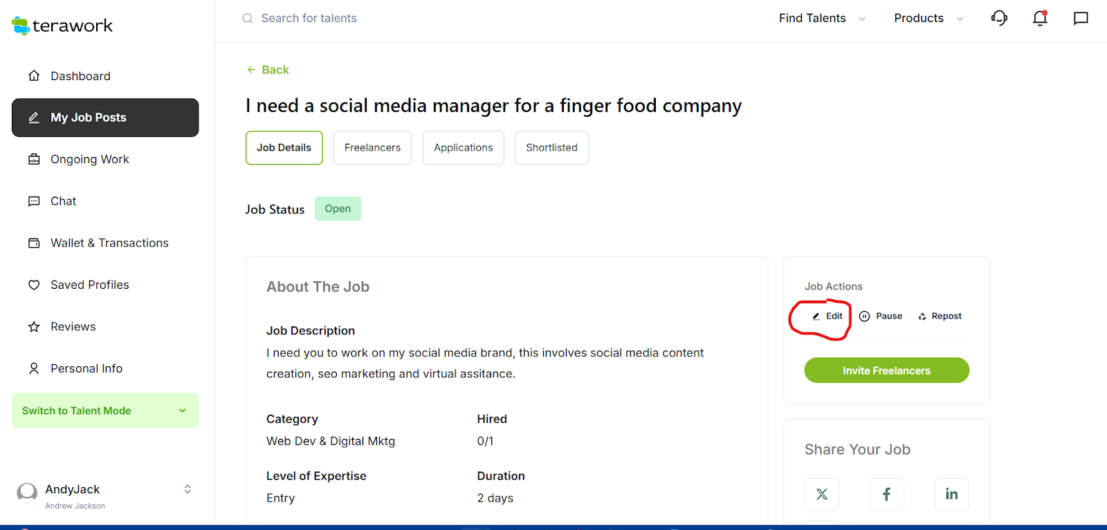 Step 1: Go to your dashboard and click on “My Job Post.”