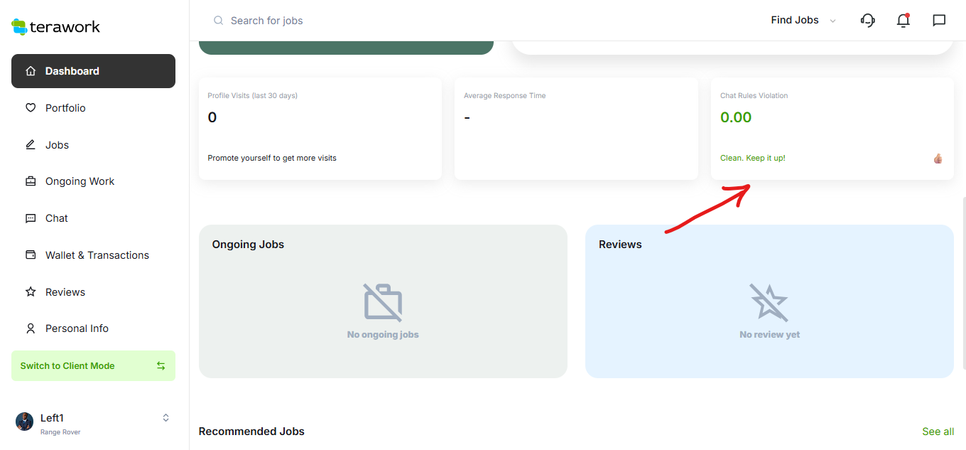 1.5. Chat Rules Violation: This section tracks any breaches of TERAWORK’s communication policies. Violations may include sharing contact details, using abusive language, or conducting transactions outside the platform.