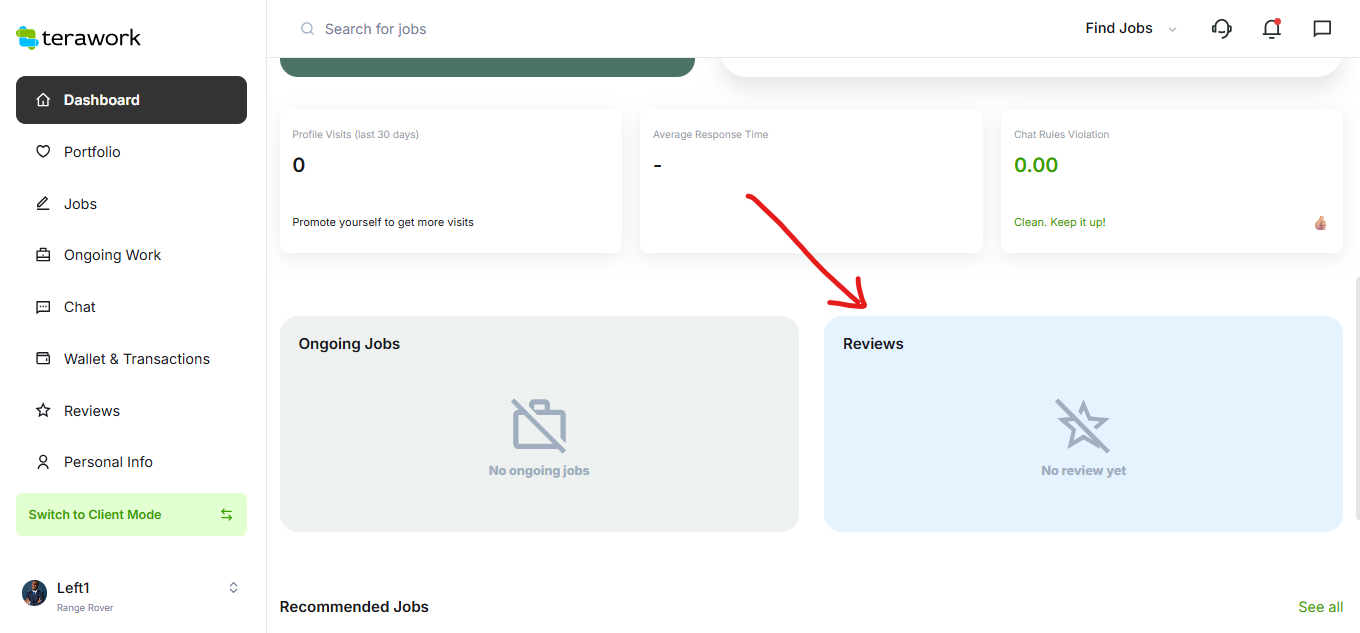 1.7. Reviews: This section displays client feedback from completed jobs.