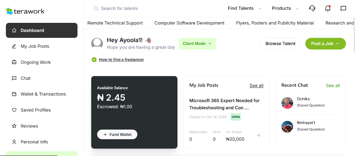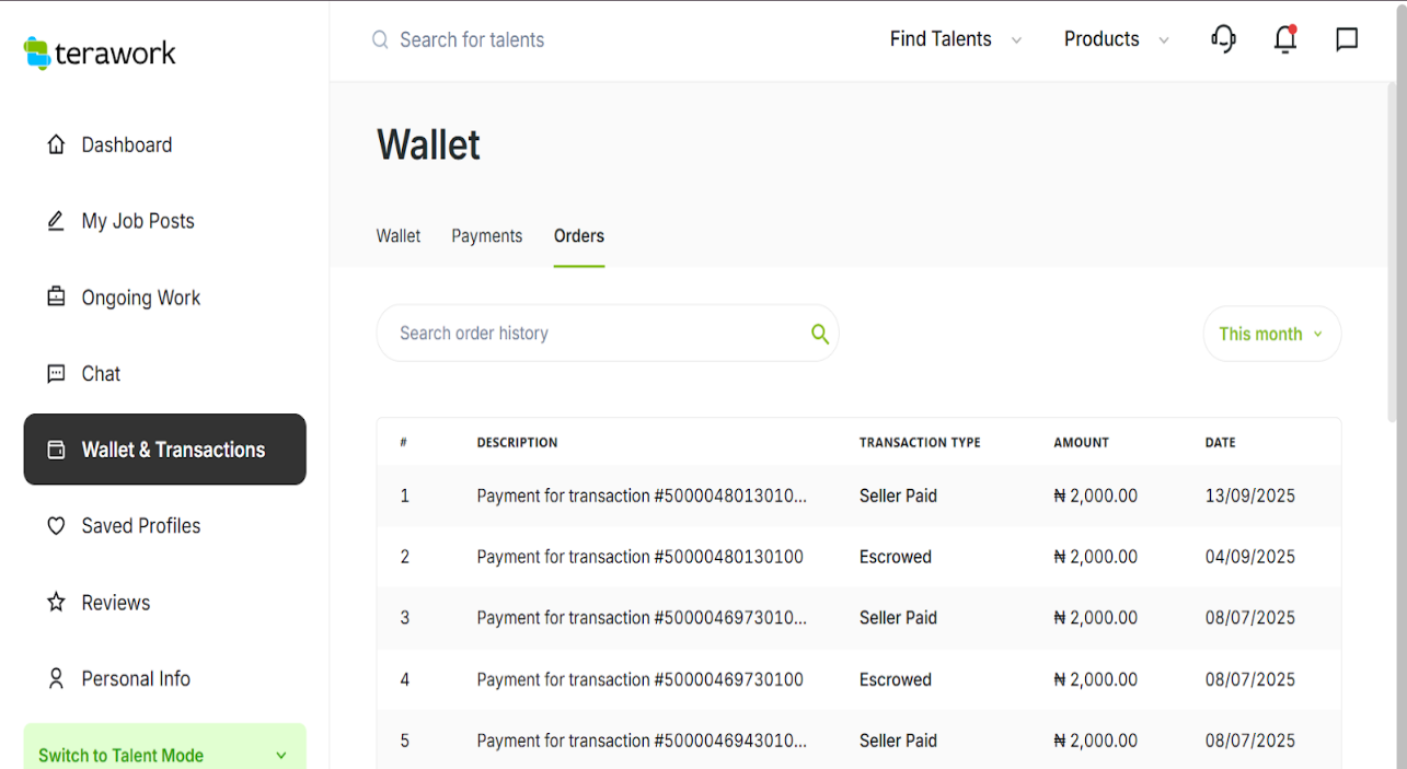 Step 1: Go to your dashboard and click on “Wallet and Transactions.”