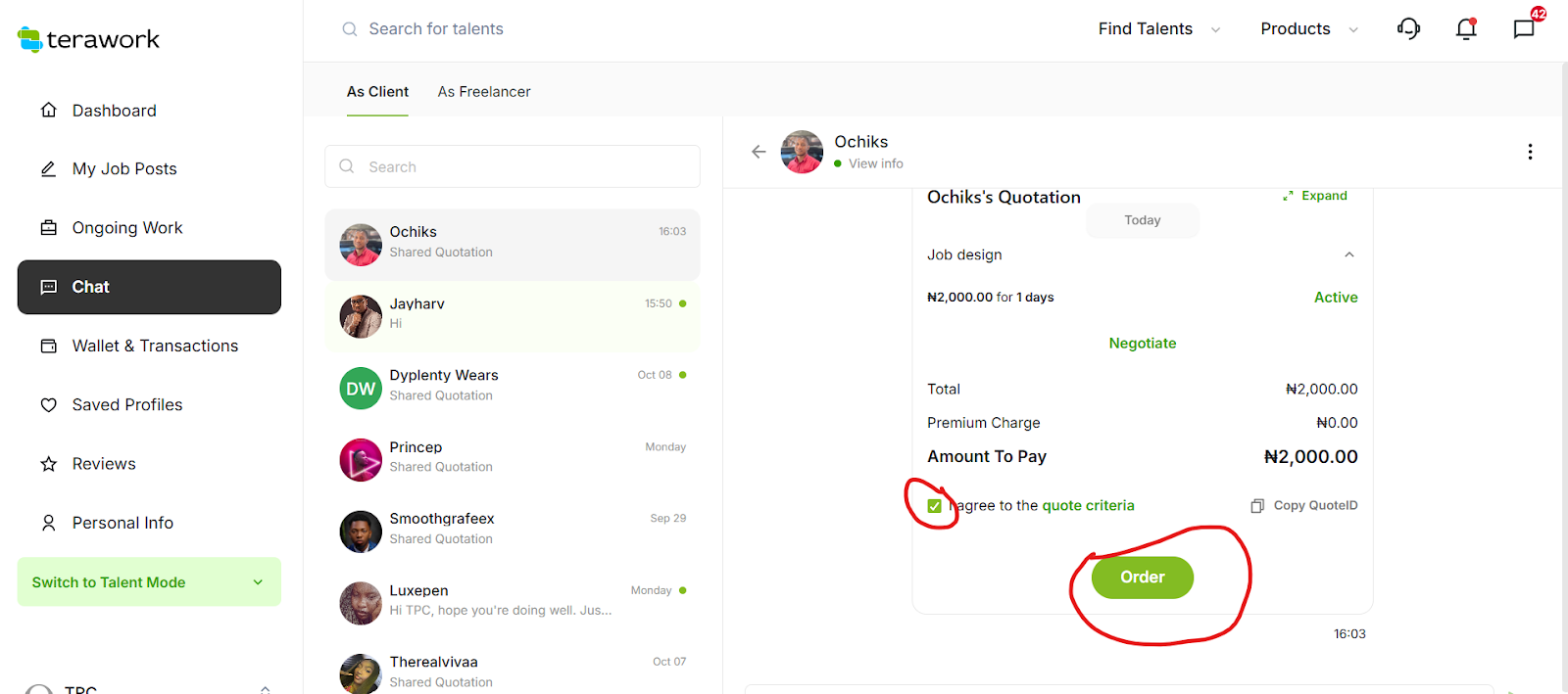 Step 1: To order or pay for jobs, check the box beside “I agree to the quote criteria,” then click on “Order.”